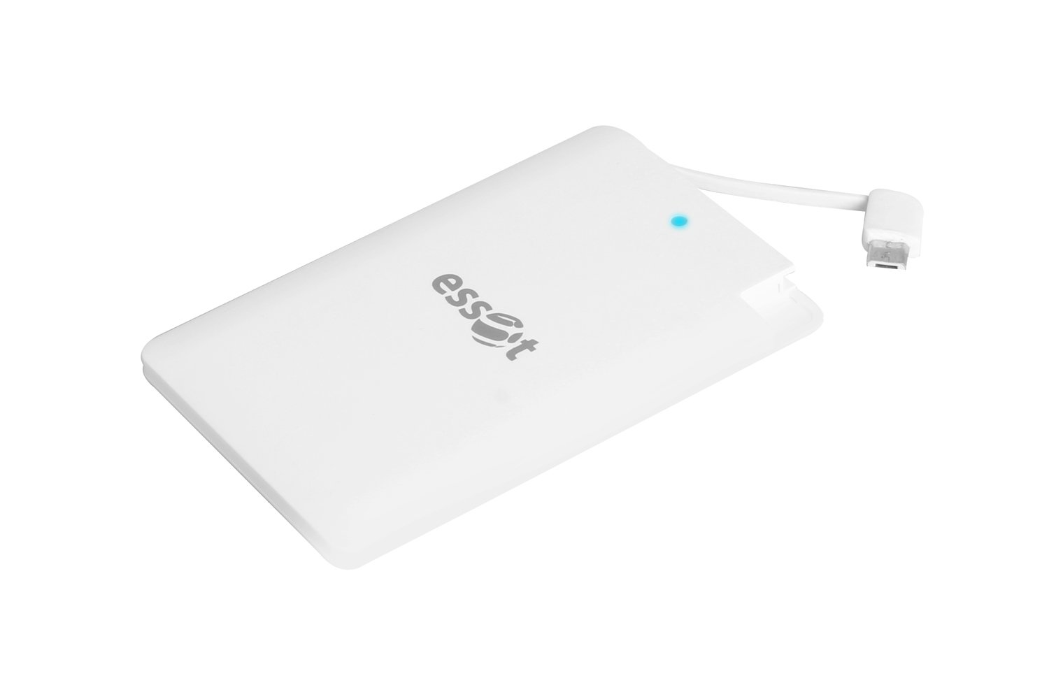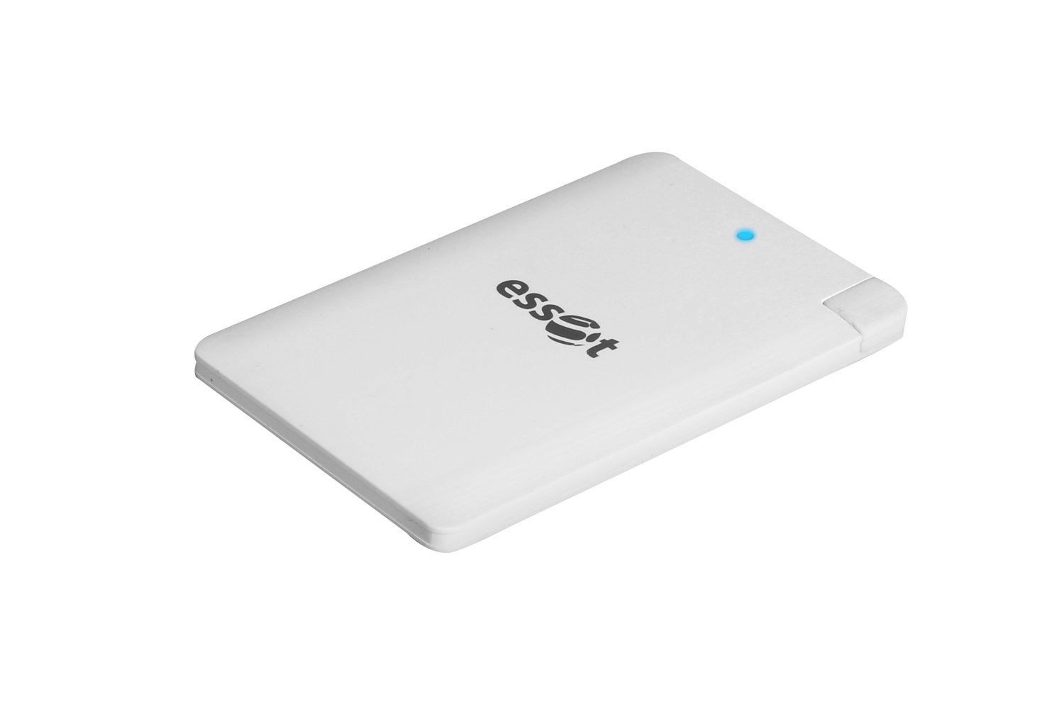 essot 2600 mAH Slim Credit Card Shape Portable Power Bank with Integrated Micro-USB Smartphone Cable (White)